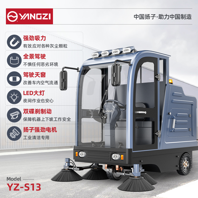 扬子扫地机YZ-S13 全封闭式驾驶 工厂车间小区物业车库广场环卫电动清扫车